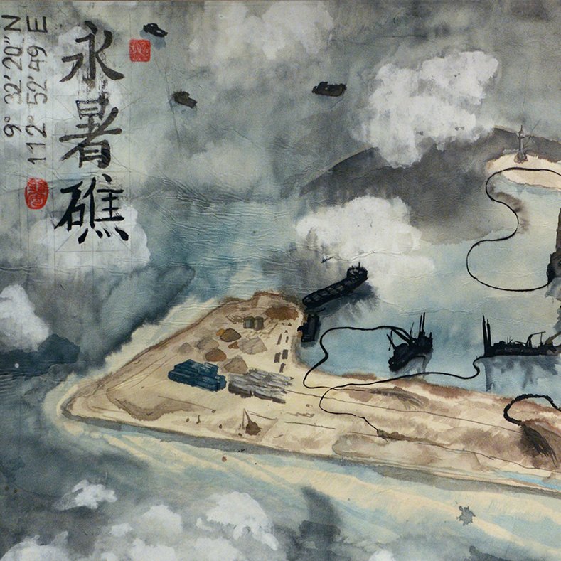 In a post-truth world where regular warfare between sovereign countries is unthinkable, US drone attacks, Russian little green men, land grabbing in Africa and Chinese Great wall of Sand is the new low intense conquest where propaganda, wit and myth is as important as it was for Dido 2 800 years ago. I have tried to portrait these territorial claims in an art stile reminiscent of classical and folk art of the nation claiming the territory, to connect it to the national mythos and contrast it to the artificial nature of the claim. Russian folk art celebrates mythological knights decorated with beautiful intricate flowers often on wooden utensils such as a chopping board. Chinese ink landscapes celebrate the tranquility of the ancient hills that have eroded under millions of years and the beauty of unspoiled nature.