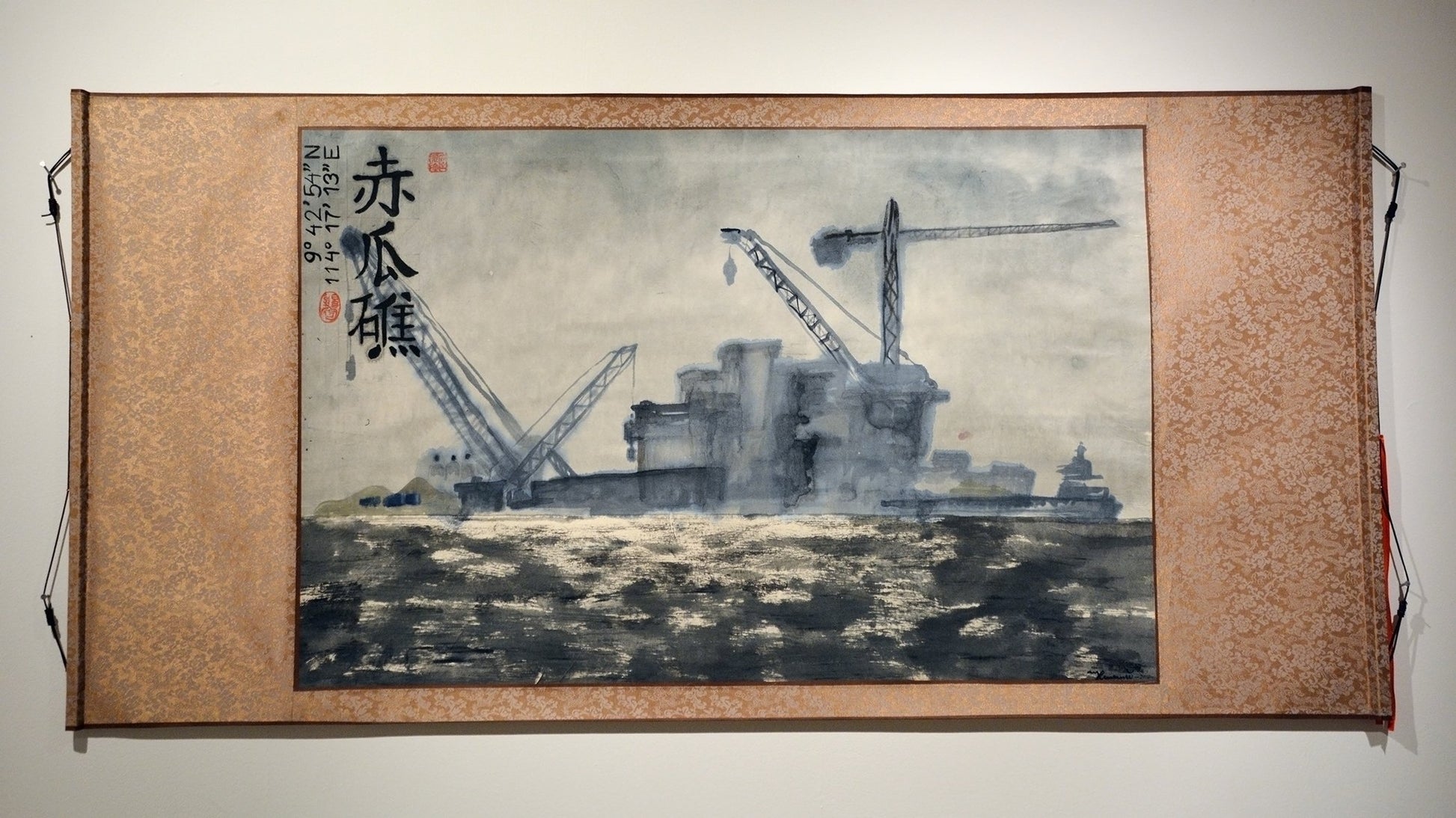 In a post-truth world where regular warfare between sovereign countries is unthinkable, US drone attacks, Russian little green men, land grabbing in Africa and Chinese Great wall of Sand is the new low intense conquest where propaganda, wit and myth is as important as it was for Dido 2 800 years ago. I have tried to portrait these territorial claims in an art stile reminiscent of classical and folk art of the nation claiming the territory, to connect it to the national mythos and contrast it to the artificial nature of the claim. Russian folk art celebrates mythological knights decorated with beautiful intricate flowers often on wooden utensils such as a chopping board. Chinese ink landscapes celebrate the tranquility of the ancient hills that have eroded under millions of years and the beauty of unspoiled nature.